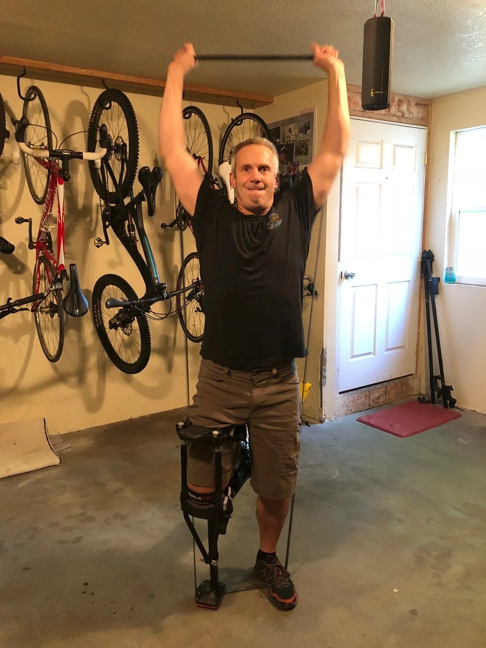 Workouts: One of the first things I did when I was injured was build a workout program I’d be able to maintain during my recovery. The iWalk was integral to that program and proved even more useful than anticipated. Using bands and dumbbells, I was able to perform standing shoulder presses, lateral raises, curls and triceps extensions. Using rings I was able to do push-ups, rows, pull-ups and dips. My uninjured leg also grew incredibly strong just from using the iWalk. I was able to do 20 or more one-legged pistol squats; I’d be surprised if I can do a small fraction of that now. Finally and importantly, my injured leg stayed active in ways it wouldn’t have if I’d been using traditional crutches. Nerves stayed engaged and boosted blood flow, speeding recovery.